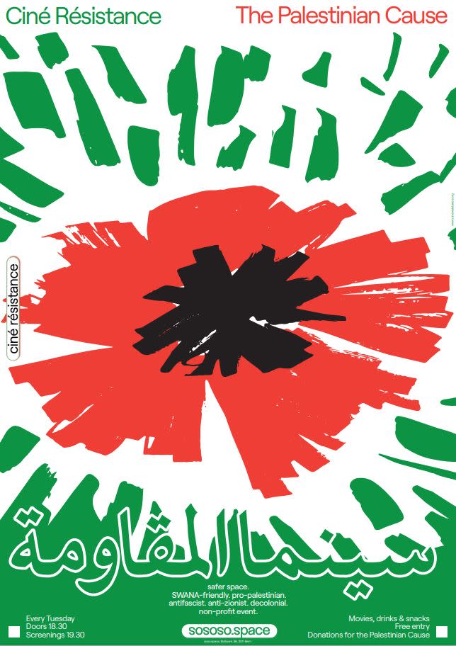 On Tuesday evenings, soso.space will be screening motion pictures and documentaries viewing global history, issues and causes from the perspective of the oppressed, starting on 30 January with a film series about Palestine and the Palestinian cause.